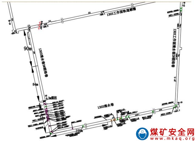 2 1303 工作面泄水巷掘進工作面到各采掘地點的距離