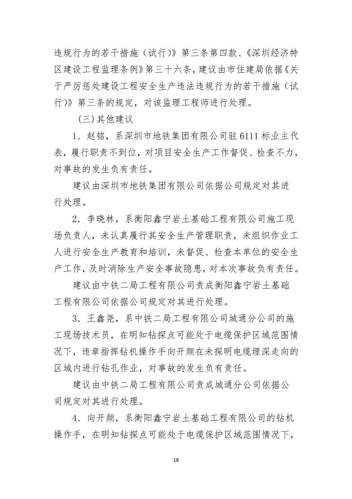 福田區人民政府關于深圳市城市軌道交通6號線二期主體工程6111標“7.05”10kv電力電纜受損事故調查報告