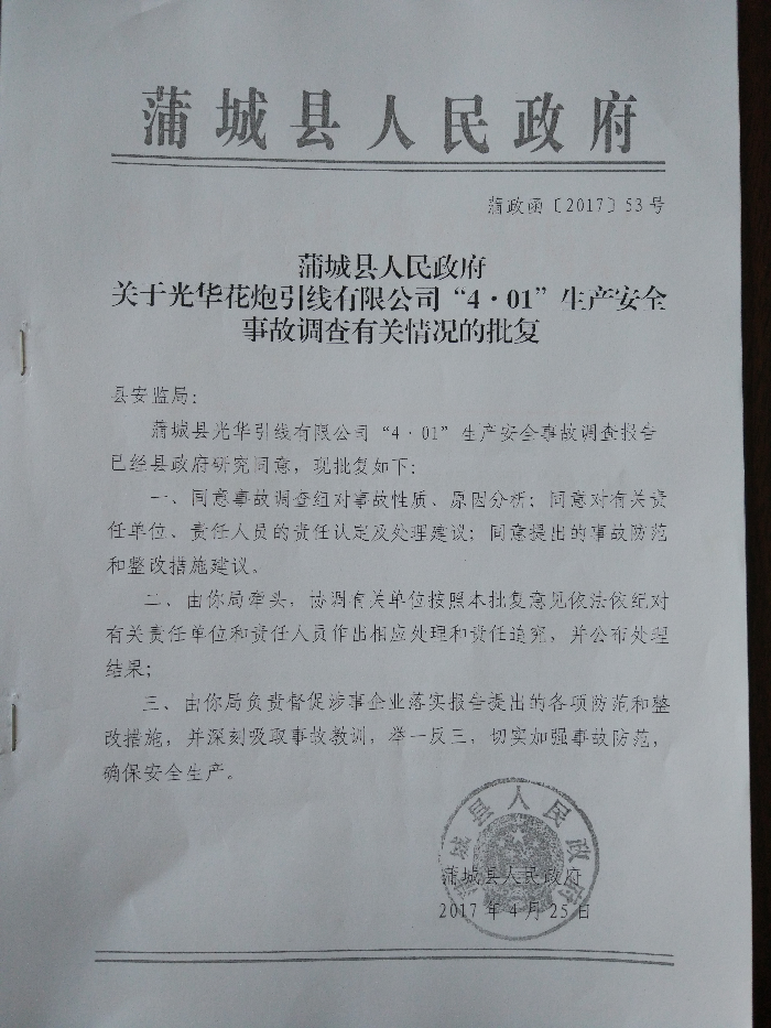 關(guān)于光華花炮引線有限公司“4.01”生產(chǎn)安全事故調(diào)查報(bào)告