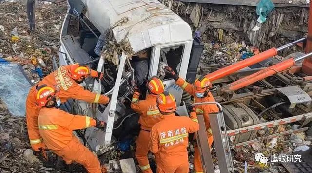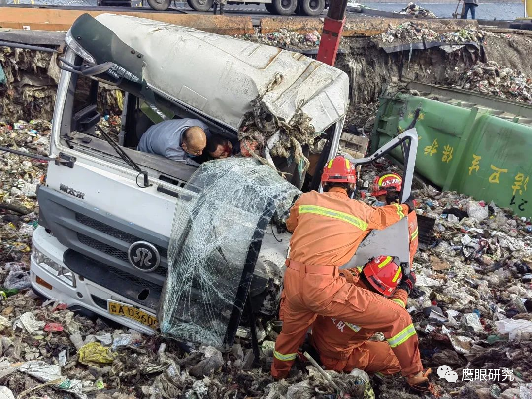 山東濟(jì)南:一垃圾車倒垃圾墜入垃圾池