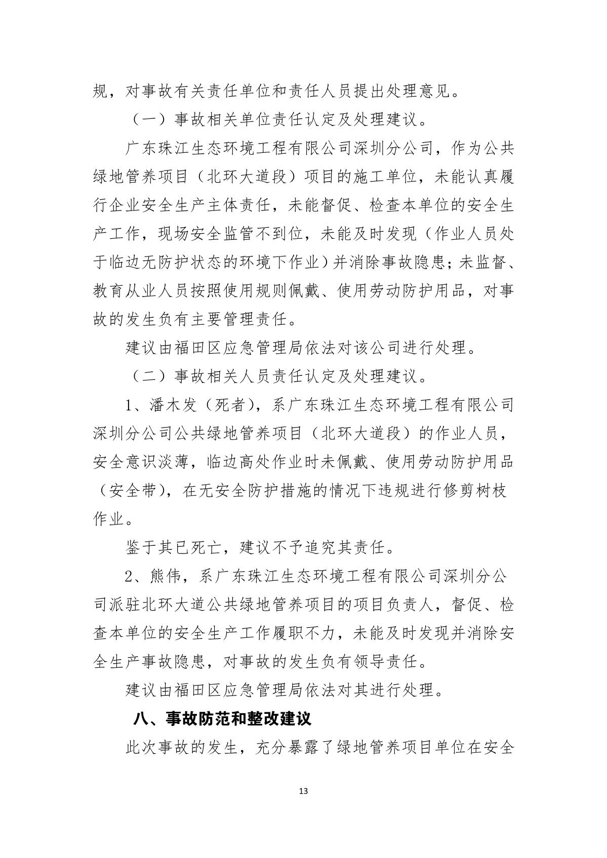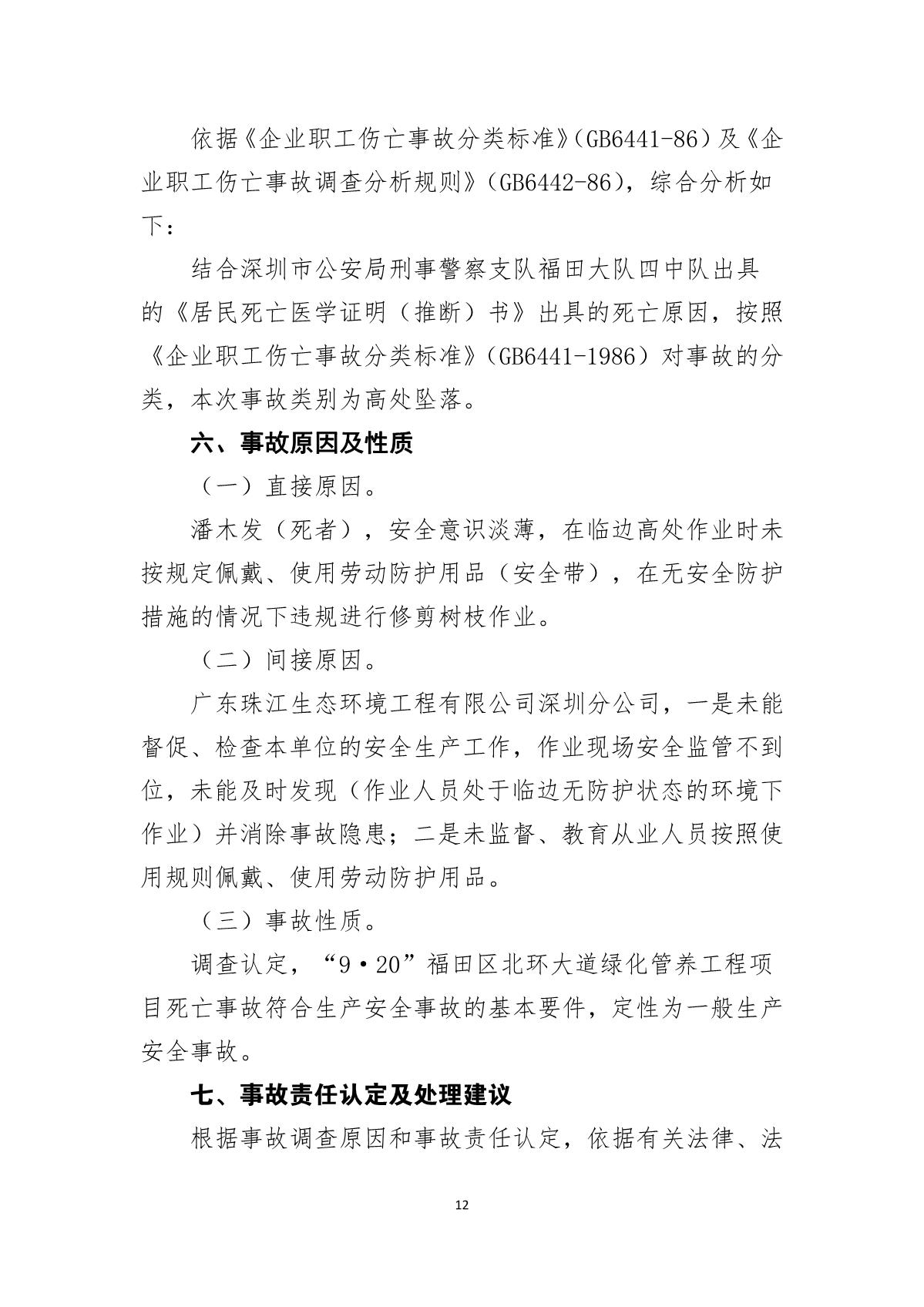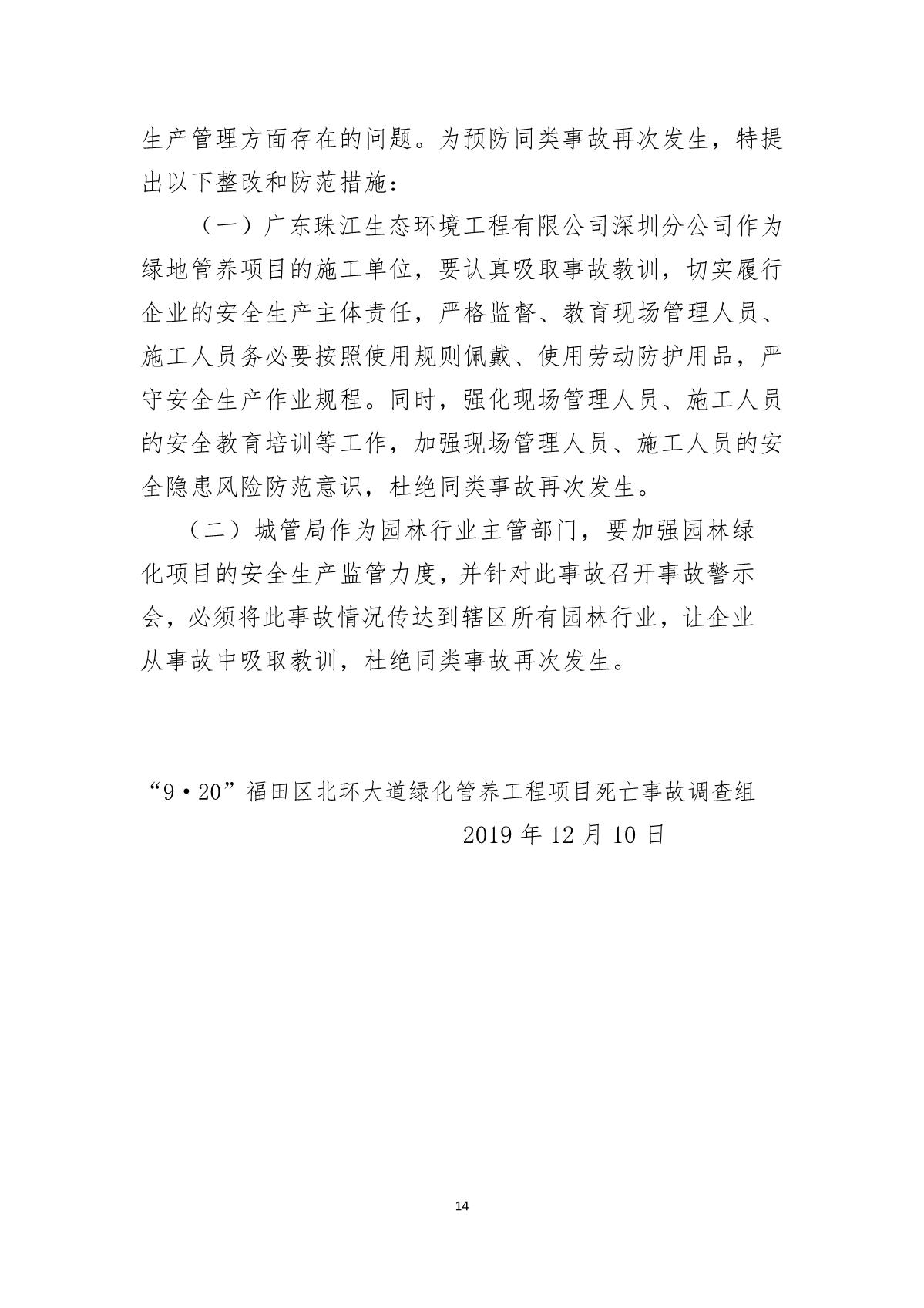 “9.20”福田區北環大道綠化管養工程項目死亡事故調查報告