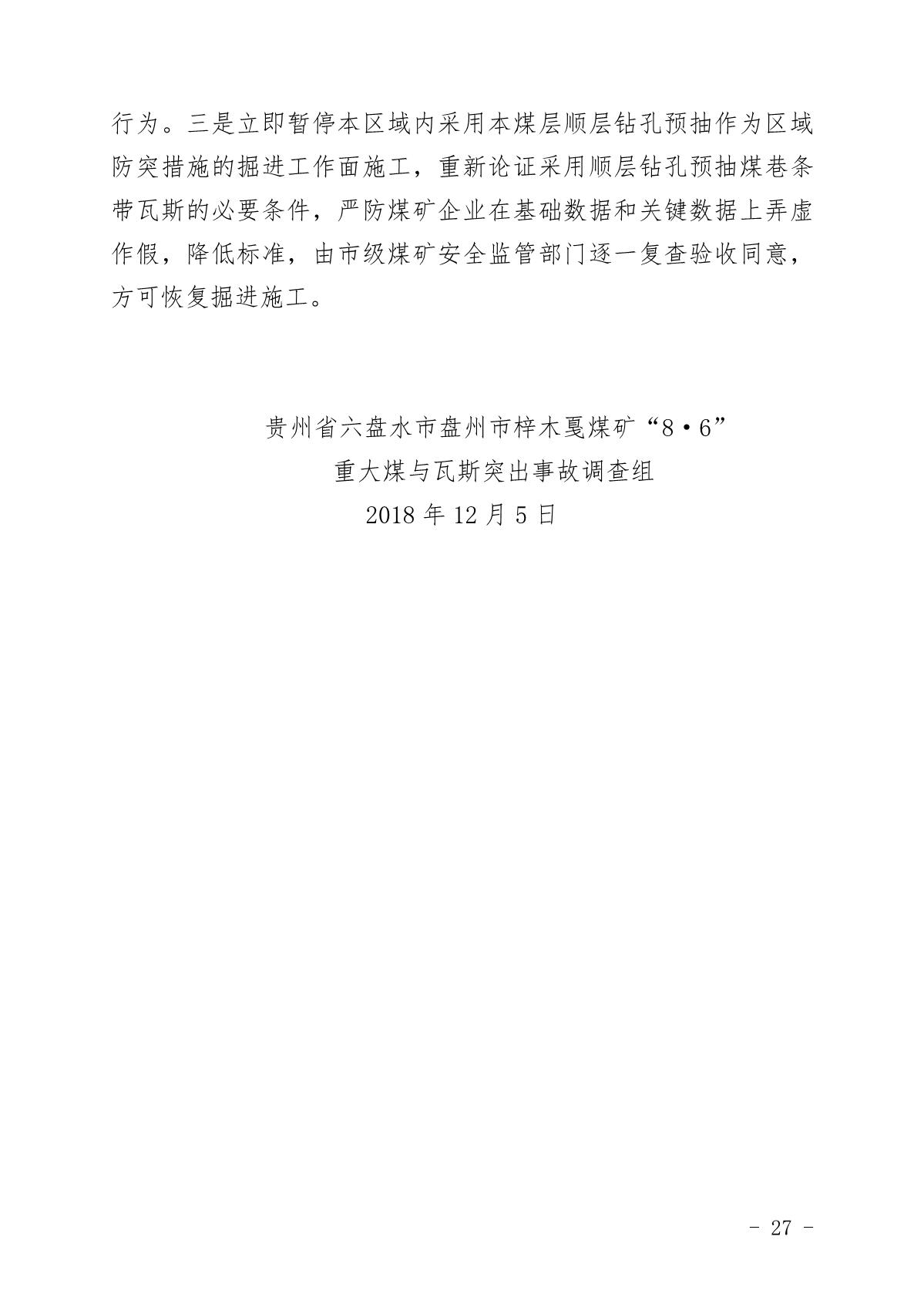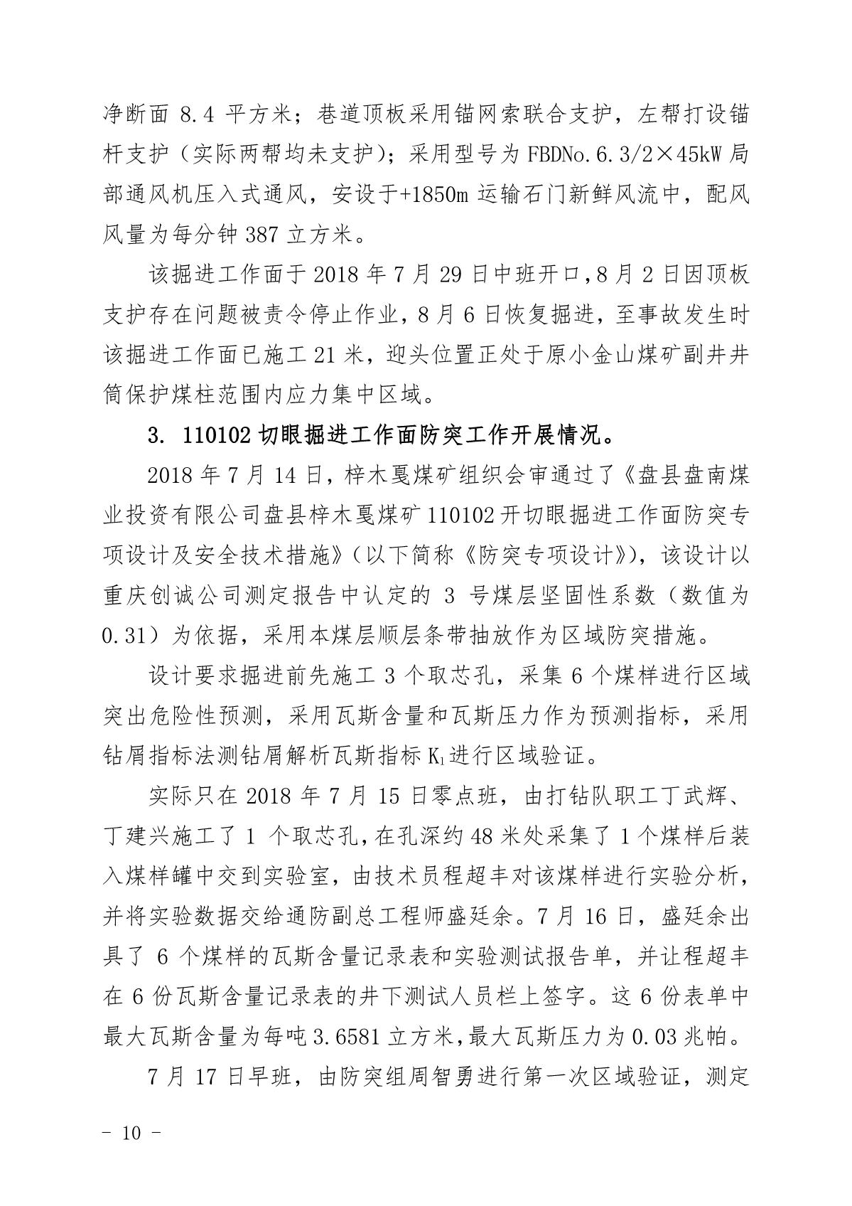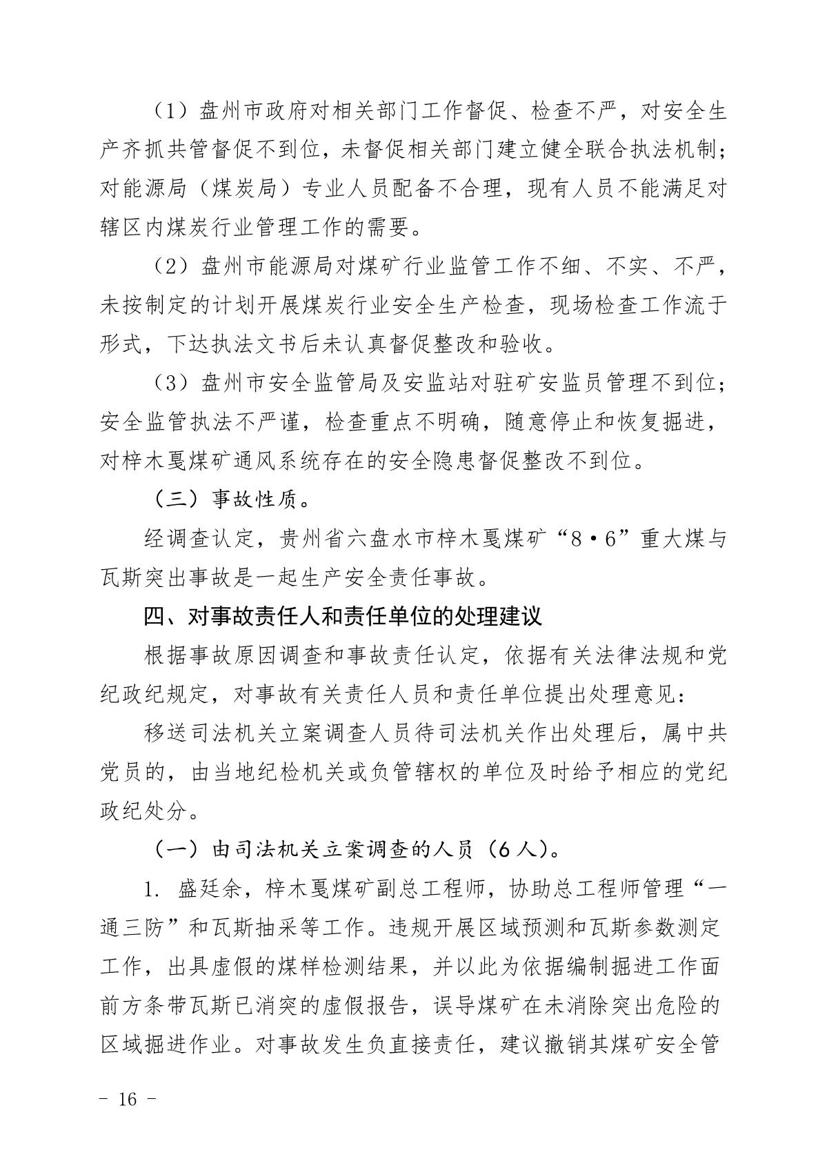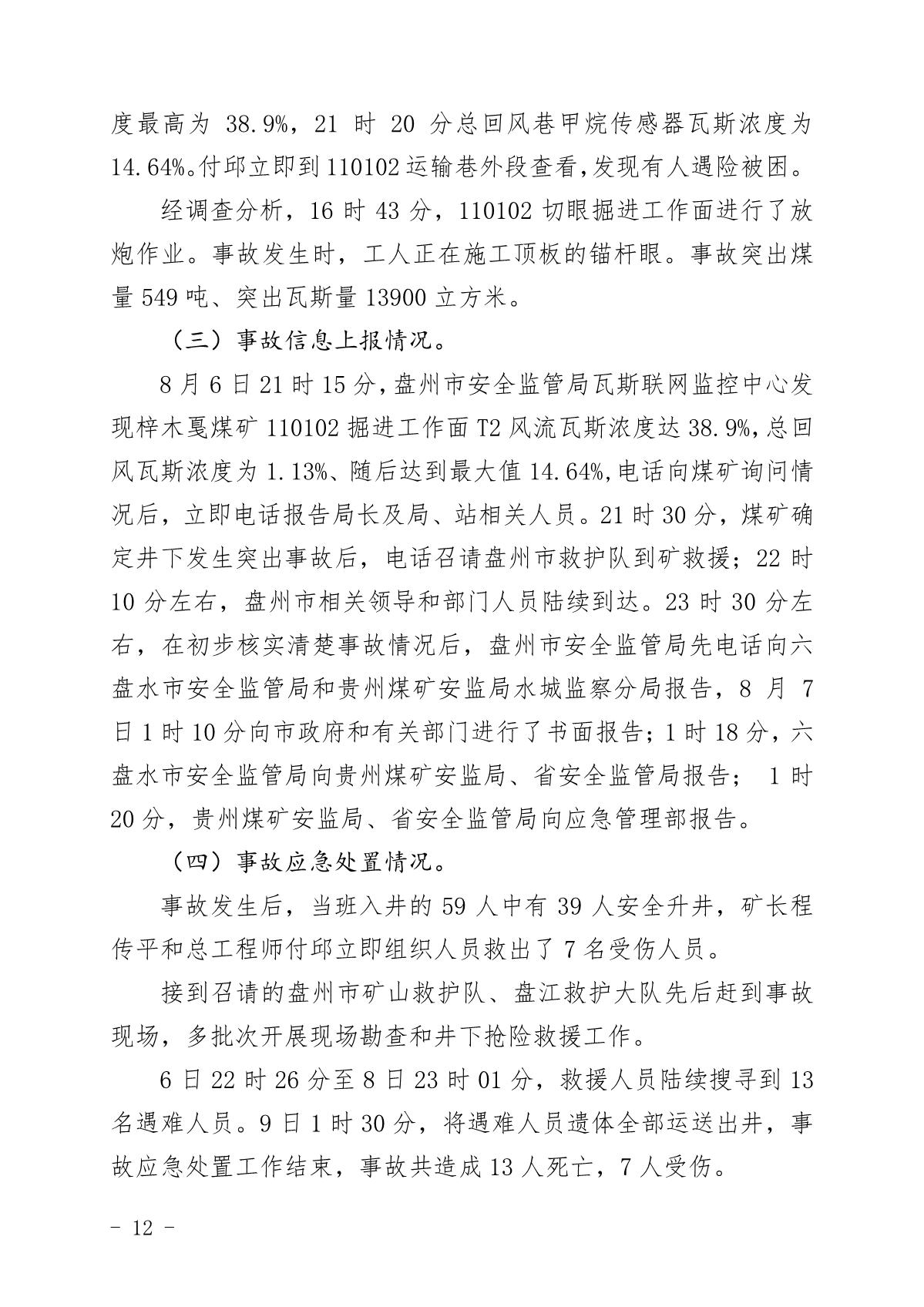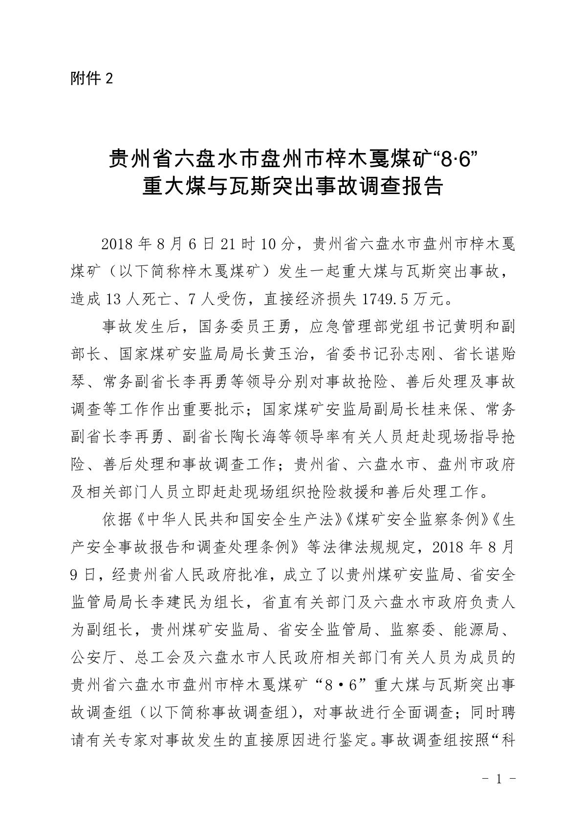 貴州六盤水梓木戛煤礦“8·6”重大煤與瓦斯突出事故調查報告