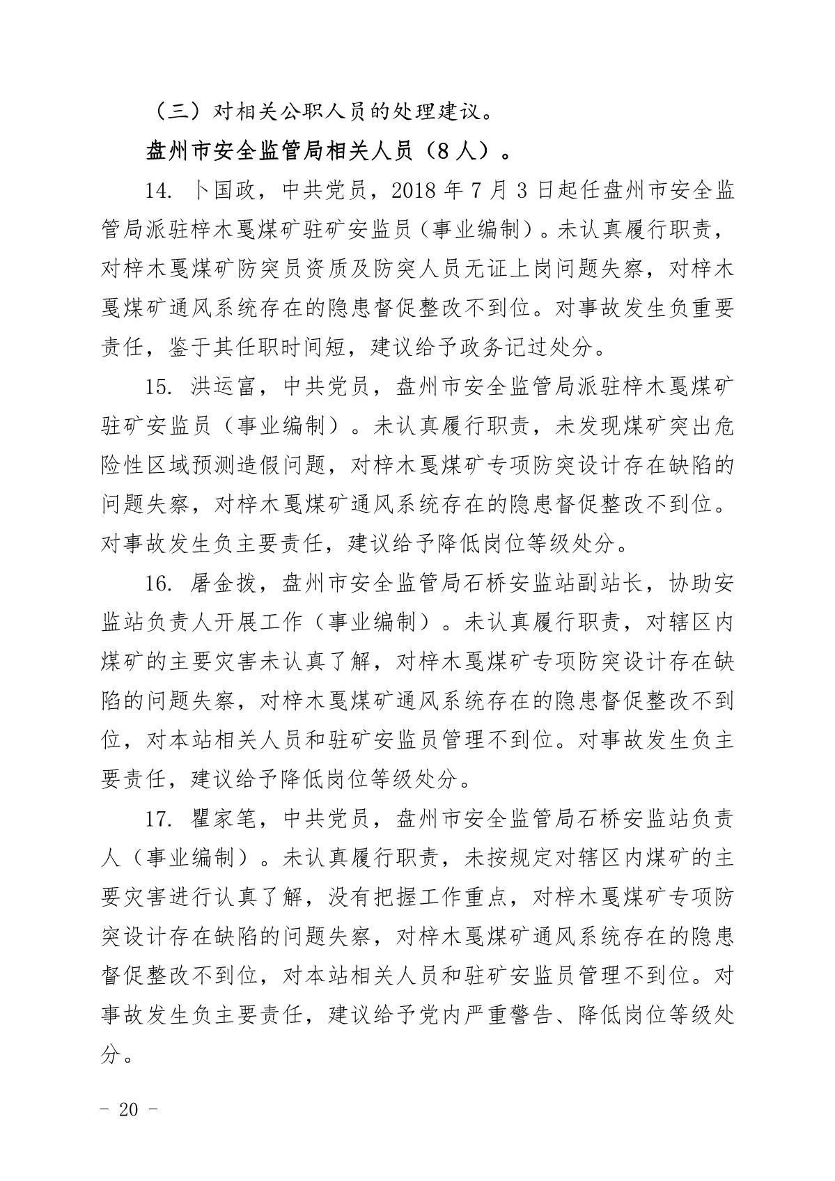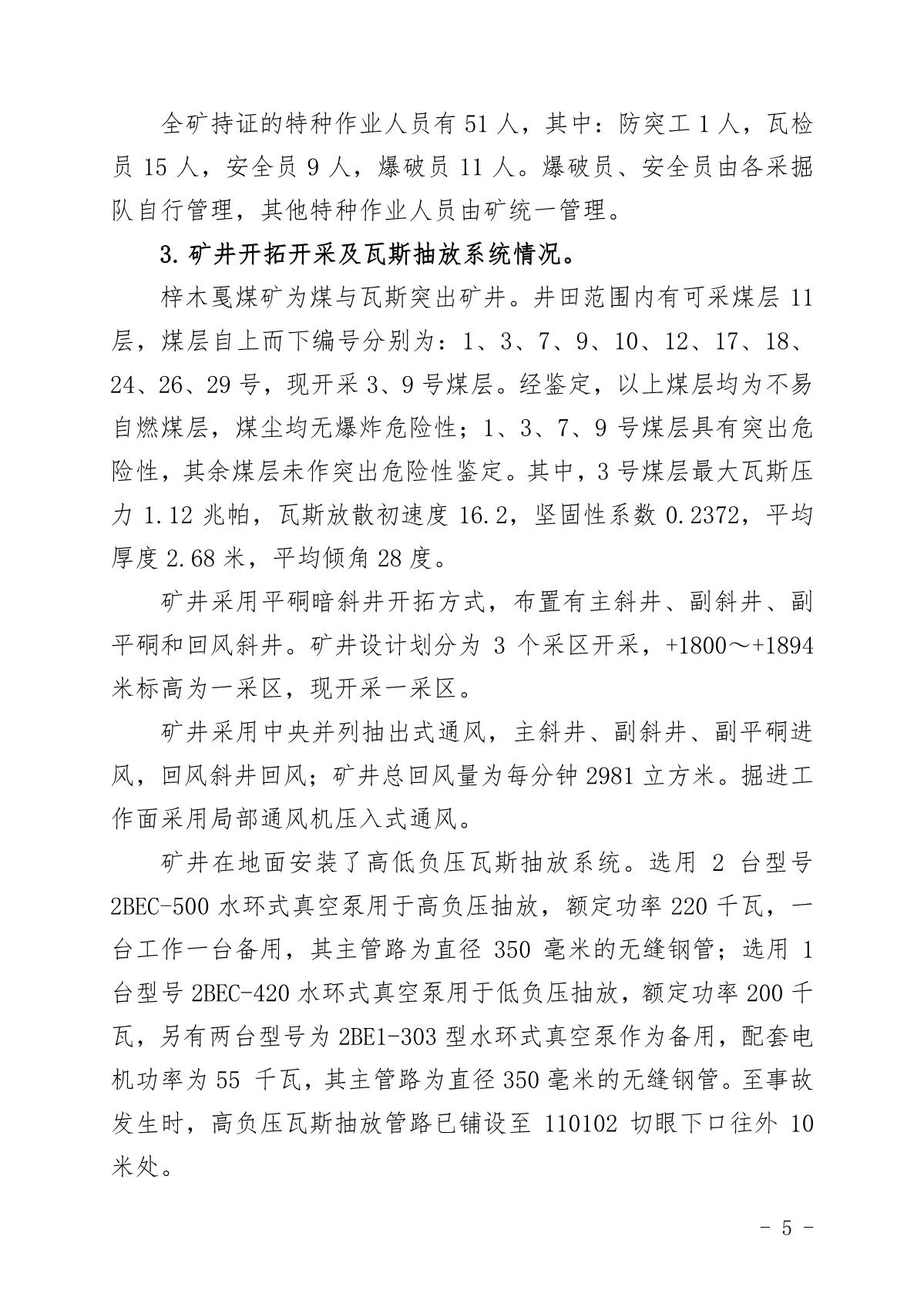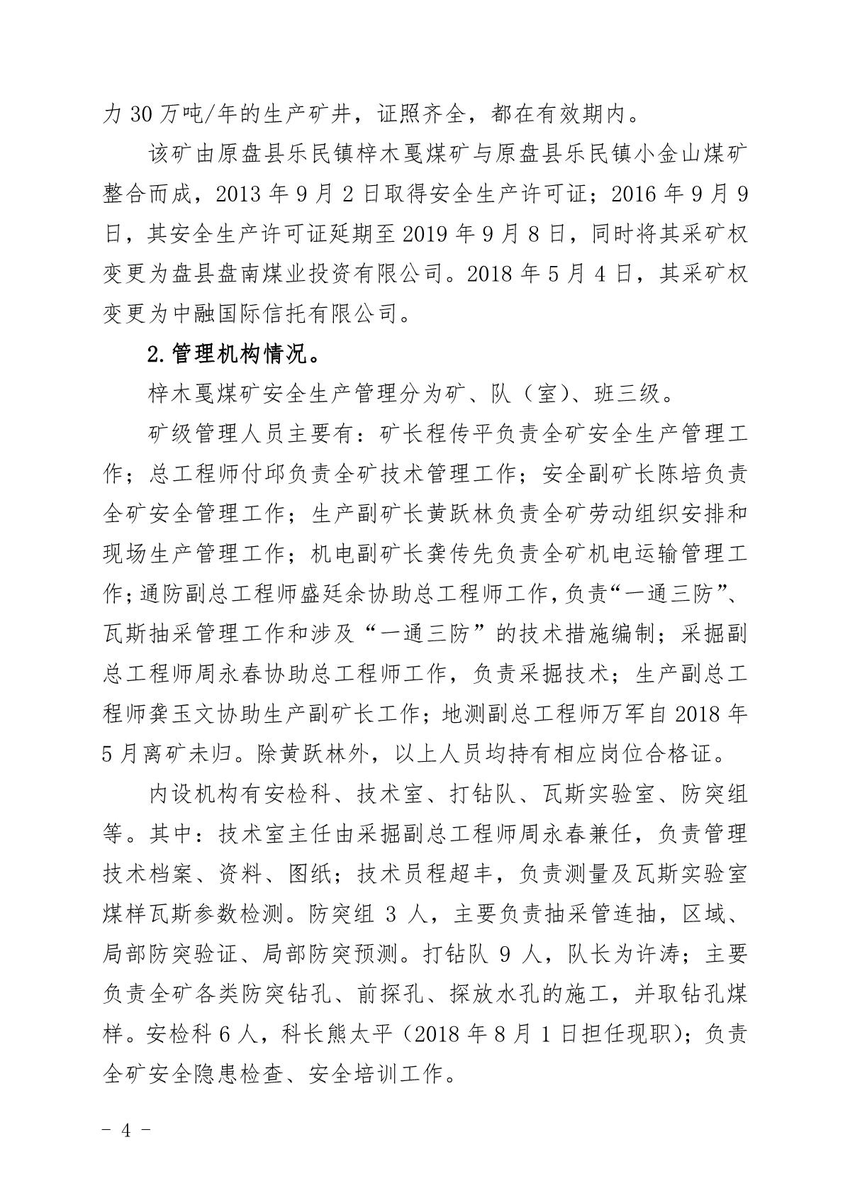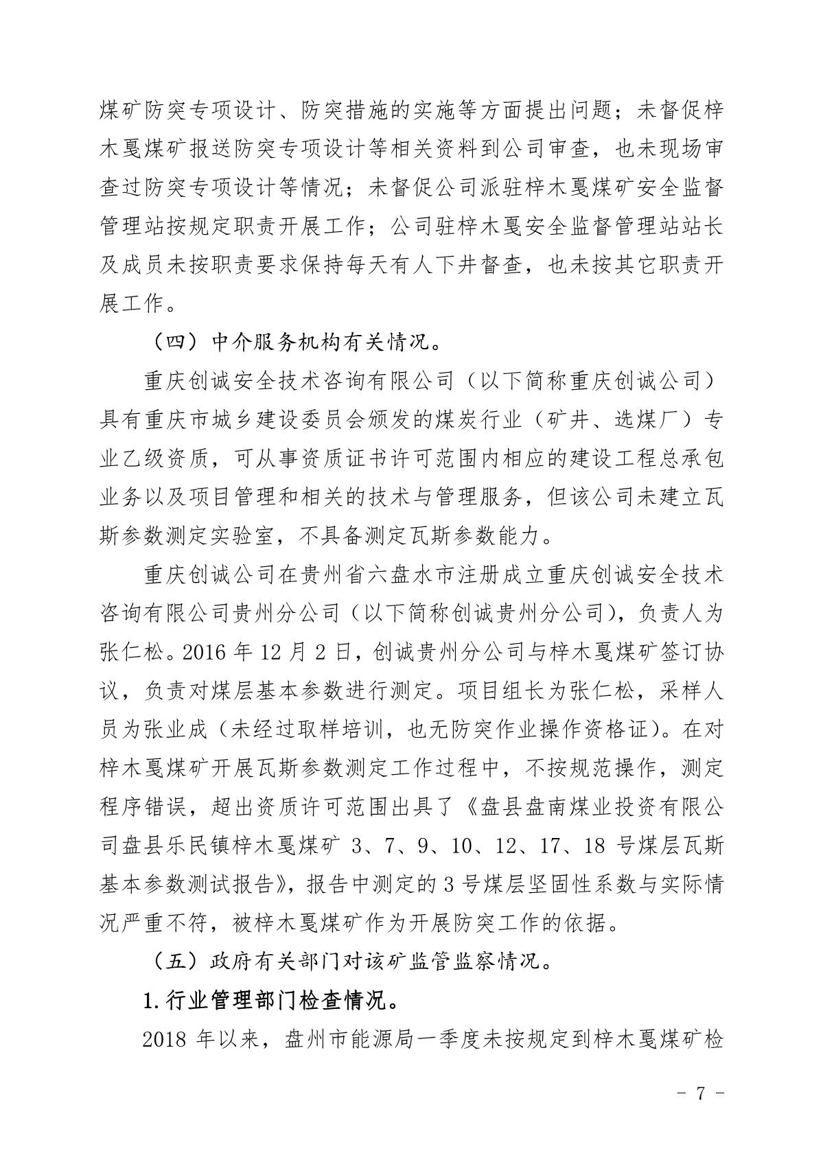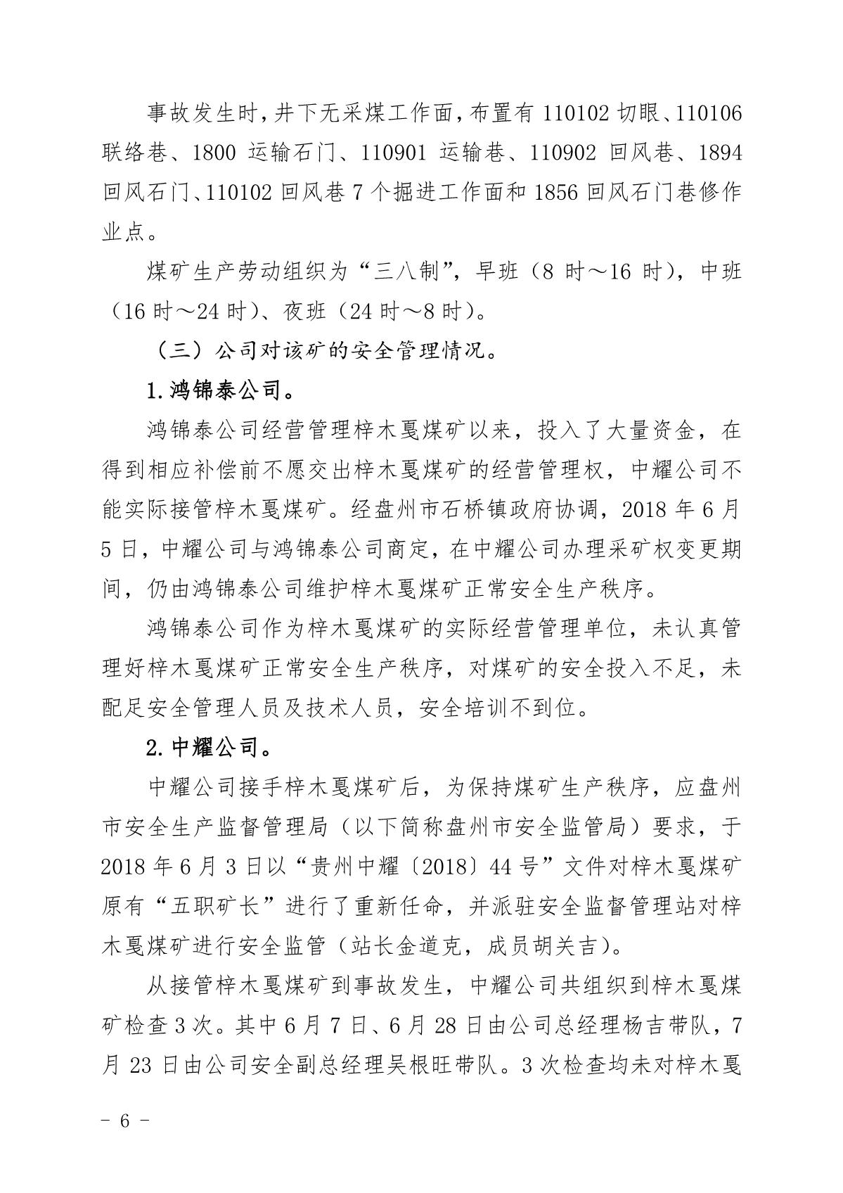 貴州六盤水梓木戛煤礦“8·6”重大煤與瓦斯突出事故調查報告