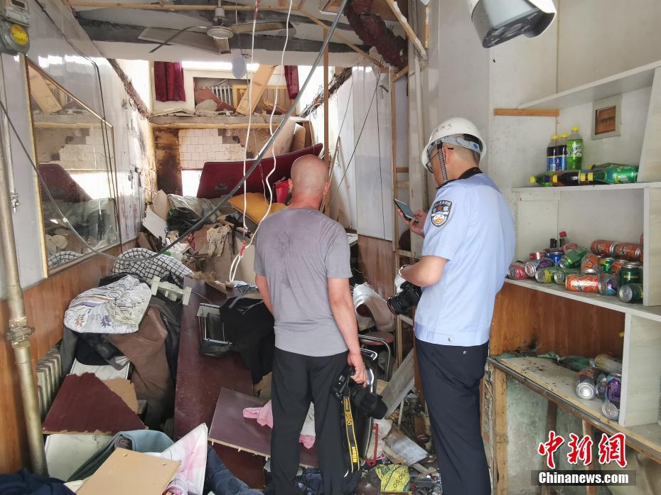 8月5日早8時左右,位于哈爾濱市道里區(qū)安順街的一家餐館發(fā)生疑似燃氣爆炸,現場一片狼藉,爆炸震碎二樓樓板,一老人墜落受傷,餐館老板娘受傷嚴重,目前兩人已被送往醫(yī)院就醫(yī)。爆炸造成路邊多輛車輛受損,附近居民樓玻璃被沖擊波震碎。中新社記者 范英杰 攝