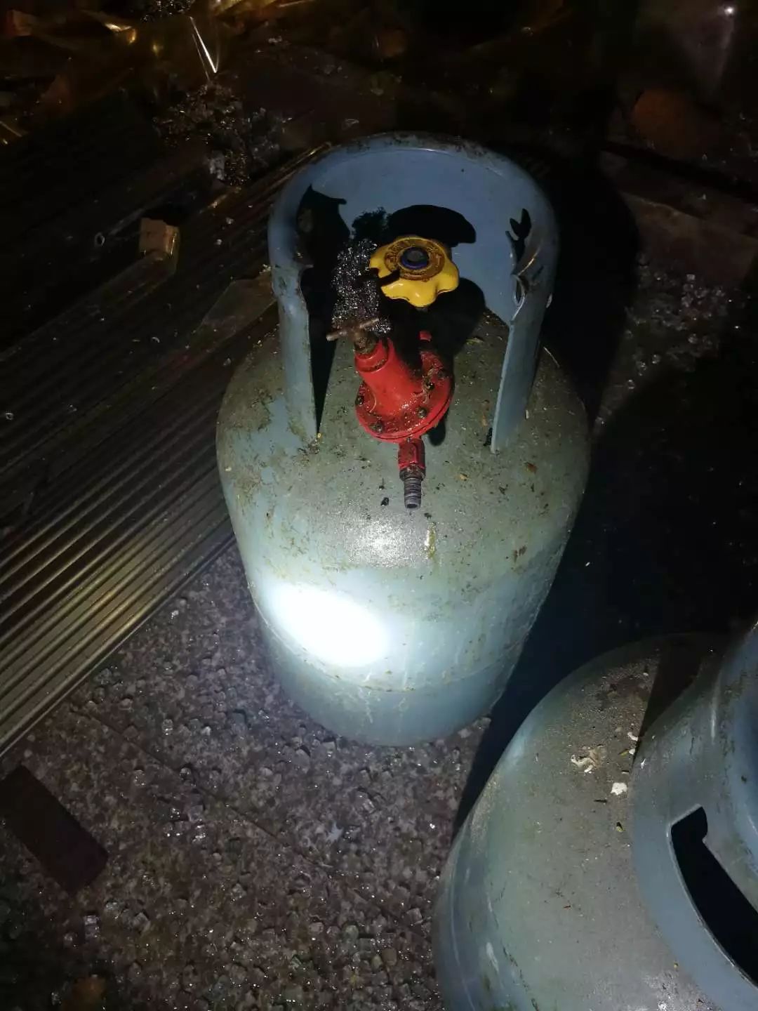 消防指戰(zhàn)員趕到現(xiàn)場后通過詢問知情人并經(jīng)現(xiàn)場偵查確認得知,此次事故發(fā)生的原因是店主離店后未關(guān)緊煤氣罐閥門,造成煤氣泄漏,當(dāng)空氣中的煤氣達到一定濃度后,遇上明火(煤爐內(nèi)未完全熄滅的煤球)發(fā)生爆炸。現(xiàn)場煤氣爆炸沖擊波使餐館內(nèi)一片狼藉,滿地都是玻璃碎渣、面館內(nèi)天花板脫落,隔壁店面遭受不同程度的損害,造成巨大經(jīng)濟損失。房縣消防到場后,立即進入屋內(nèi)將五個煤氣罐放于安全地帶。