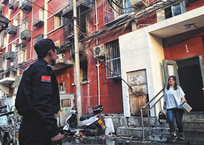 住在該單元四樓的李女士是一名租戶,她介紹,當時突然聽到一聲巨響,家里門被沖開,門框被震脫落,窗戶玻璃也被震碎。之后趕緊下樓,10分鐘之內,整棟樓的人都在往外跑,下樓時看到一樓還有明火。