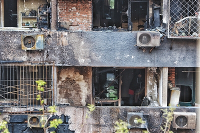 該小區4號樓1單元101的劉先生家則基本上化為灰燼。記者在他家看到,墻壁被燒成焦黑色,地上沉積著到腳踝的灰燼,整個房子被燒成毛坯房樣?!吧嘲l、柜子這些大件物品都沒有了,廚房、衛生間都是玻璃的,也都燒化了,還有一些字畫?!眲⑾壬f,家里藏有不少洋酒等,損失慘重。