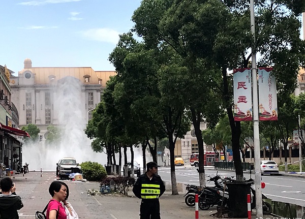 據(jù)目擊者介紹,事發(fā)時(shí)看到和炯路三彩路噴出大量白色煙氣,氣體噴射高度約有10米,氣體噴出時(shí),發(fā)出巨大的“嗤嗤”聲,附近街道上彌漫著煤氣味。接到報(bào)警后,相關(guān)部門迅速到場(chǎng),民警在事發(fā)地附近多個(gè)路口拉起警戒線,并疏散圍觀市民。消防隊(duì)員鋪設(shè)水帶,并在泄漏點(diǎn)附近打起水幕,防止現(xiàn)場(chǎng)氣體遇火星后發(fā)生發(fā)生危險(xiǎn)。燃?xì)夤緭屝奕藛T則尋找該管道閥門,約1小時(shí)后,閥門被關(guān)閉,氣體停止噴射。