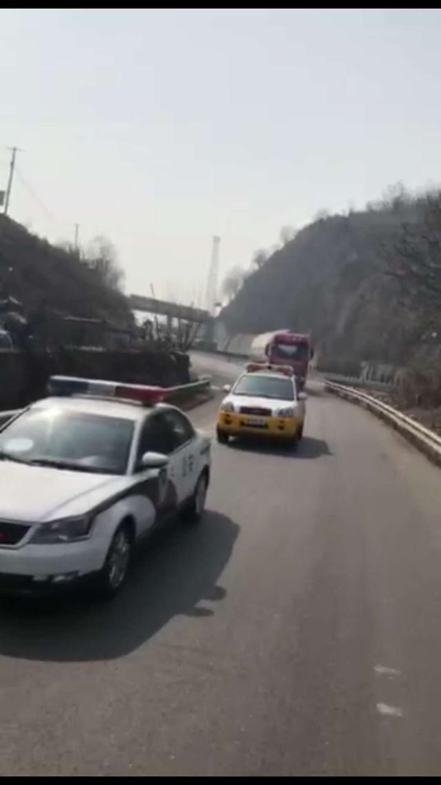 因事發地為當地槐樹鋪村村民居住相對密集區域,一旦有火點引發爆炸,后果不堪設想。經現場民警、消防人員與該車駕駛員和押運員商定后,決定采取由警車、路政巡邏車在前方帶道,該?;奋嚲o隨其后,消防車在尾部觀察警戒的方式,駛向距離晉冀交界6公里下高速且人員相對較少的開闊場地再進行處置。