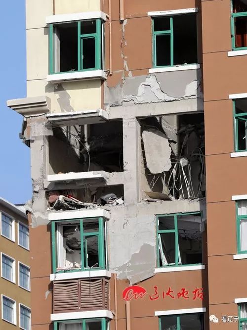 發(fā)生閃爆事故的是一棟臨街17層住宅樓的7樓,因位于西側(cè)房山位置,該住戶家所有的外墻都在沖擊力下被炸飛,僅剩立柱,最為嚴(yán)重的臥室位置,樓上和樓下的樓板幾乎被炸通,有的位置僅有鋼筋連接著大塊的樓板。整棟樓的玻璃大部分都碎掉了,一些受損不嚴(yán)重的住戶已經(jīng)用塑料布或者床單進(jìn)行了遮擋。