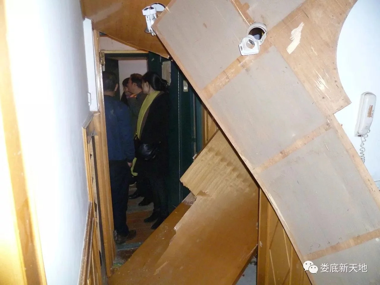 下午6時,筆者走進這套位于仙人閣的三室兩廳居室。只見防盜門活脫脫地被強大的氣浪沖開,里層的木門碎裂倒掉,客廳的天花板上也有好幾塊被毀。三個臥室、陽臺、廚房的玻璃全部被震碎,碎玻璃撒了一地,滿地狼藉。臥室的柜子也被沖倒。