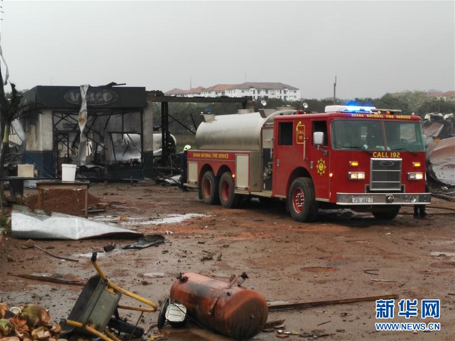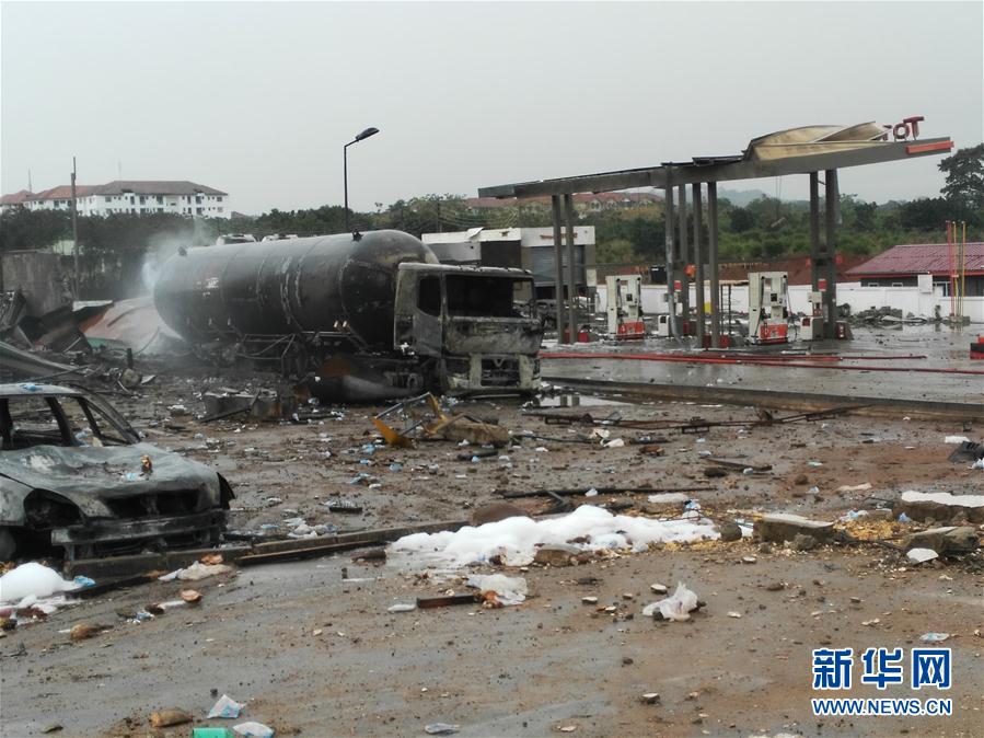 這是10月8日在加納首都阿克拉拍攝的燃氣站爆炸現場。加納國家消防局發言人安那格雷特8日說,加納首都阿克拉市區北部7日晚發生的燃氣站爆炸已造成至少6人死亡、35人受傷。新華社發(賈斯蒂斯·阿道伯伊攝)