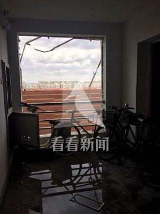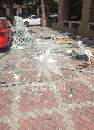 事發時,周邊居民聽到巨響,隨后有人感到震動,事故發生后,該幢大樓內不少居民家中受到殃及,幾個樓層的居民家里玻璃窗被震碎,大量玻璃碎片、窗框、書籍等雜物掉落在小區通道上,多輛轎車擋風玻璃被砸穿,小區草坪、通道上到處是散落的碎玻璃渣和各種生活用品。