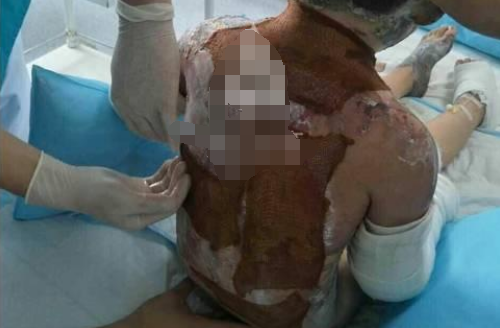 事故發生后家屬和鄰居立即將傷者送往醫院搶救,因為83歲的姥姥受傷較輕目前在縣醫院接受治療,10歲的黃澤和53的母親被送往承德醫學院附屬醫院搶救。經診斷母親全身大面積燒傷,燒傷面積達42%,10歲的黃澤全身大面積燒傷,燒傷面積達46%,并伴有頭皮裂傷等情況,目前兩位傷者都處于危險期。