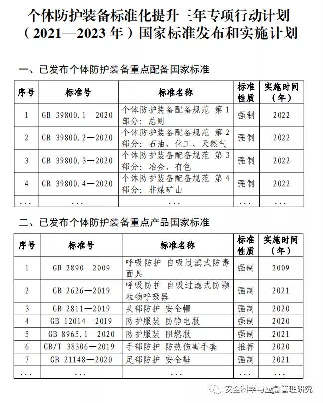 個(gè)體防護(hù)裝備標(biāo)準(zhǔn)化提升三年專項(xiàng)行動(dòng)計(jì)劃 (2021—2023年)